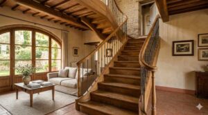 - Scale rustiche: Le scale rustiche sono caratterizzate da un design tradizionale, con legni grezzi e naturali che creano un’atmosfera calda e accogliente. Questo tipo di scala è perfetto per gli interni in stile rustico, country o cottage.